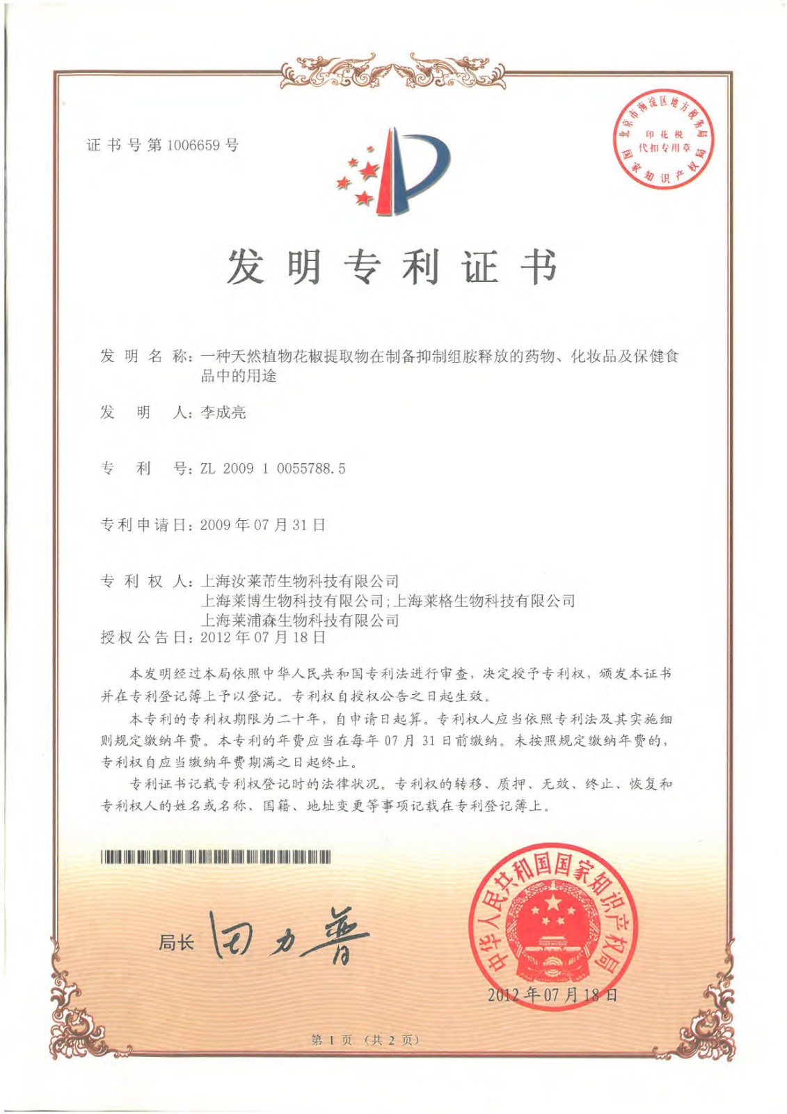上海植納生物科技有限公司創始于2003年,是一家專注于功效性化妝品原料研發和生產的國家高新技術企業,是東方美谷功能護膚品研究院主創單位之一。企業坐落于上海奉賢東方美谷產業核心區,經營體系集科研、生產、倉儲、銷售與一體,使用面積約3800㎡。 20余載的發展沉淀,讓我們在基礎研究、技術研發、科研管理等方面積累豐厚經驗。現已累計擁有60+項發明專利,1000+款自主研發活性成分在售。 我們廣泛與行業權威專家和前沿院校展開聯合研發技術合作,為產品開發提供豐富的技術支撐。
